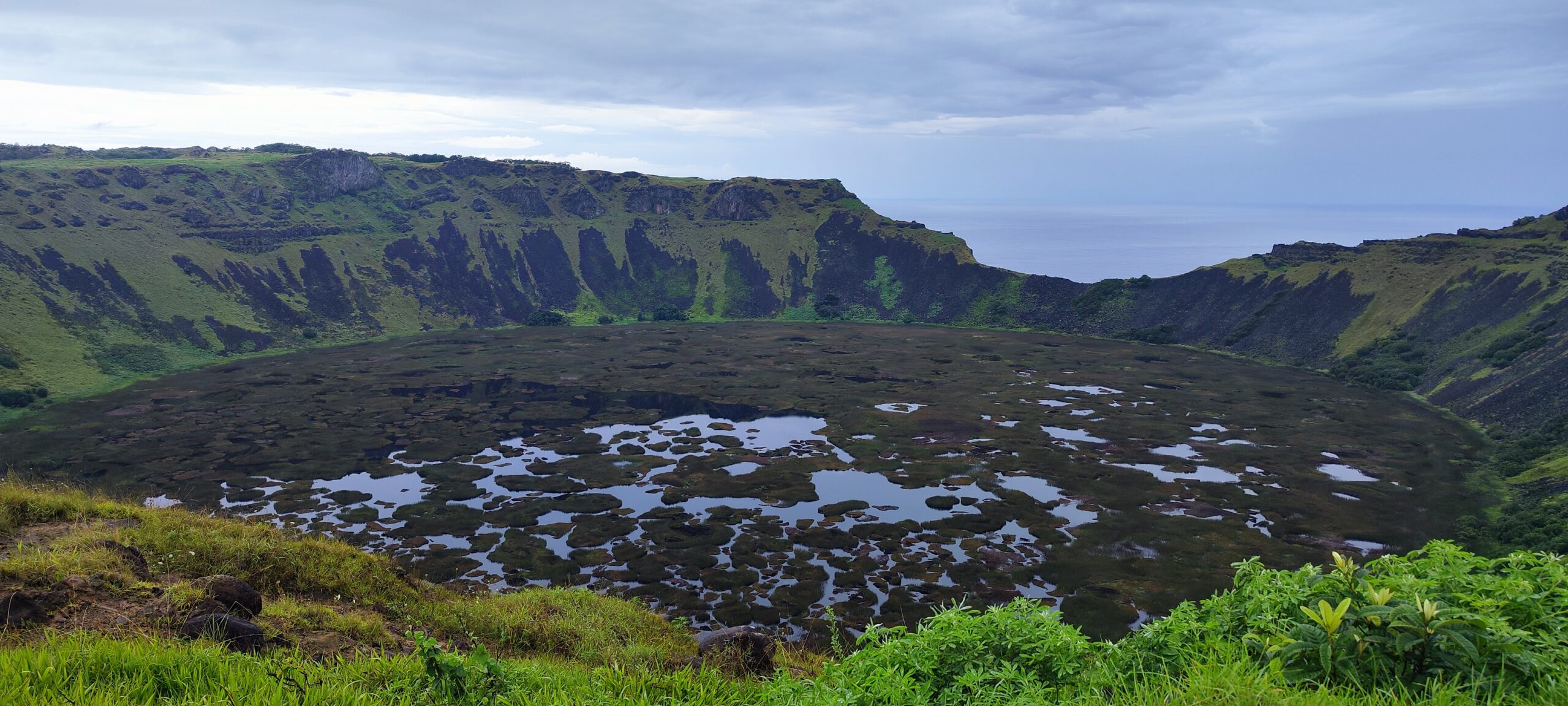 Explora la aldea ceremonial de Orongo y el volcán Rano Kau, uno de los lugares más emblemáticos de Rapa Nui.